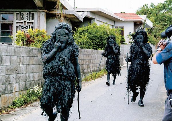 泥を全身にまとった仮面姿の神が集落を練り歩き、家々や人々に泥を塗っていきます。