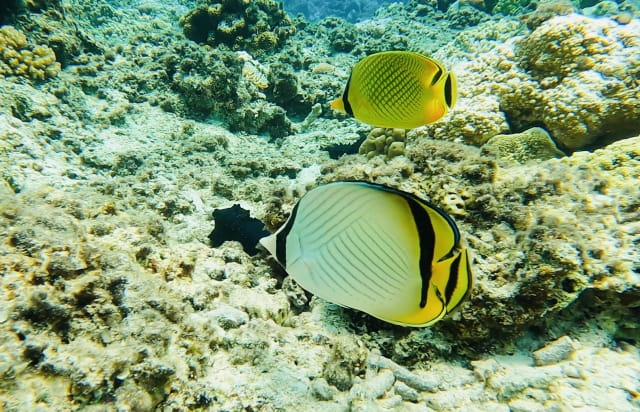 生き物の住処にもなるリーフでは、かわいい魚たちがたくさん見られますよ。