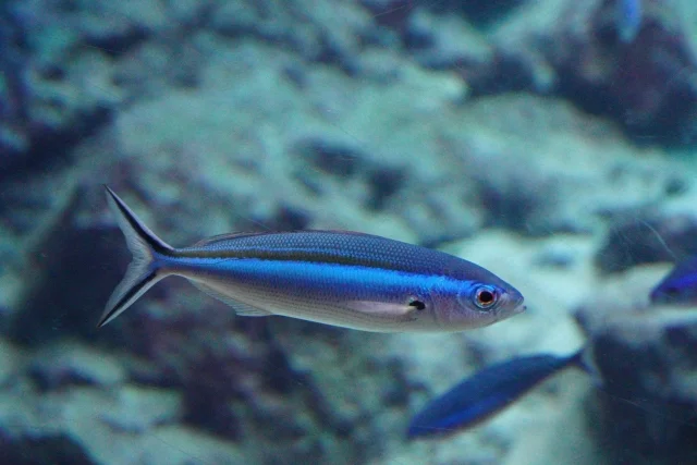 沖縄の県魚として知られ、青と銀色が混ざった体色が特徴の魚です。