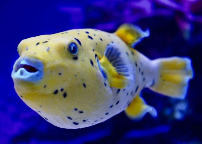 白からグレー系の明るい体色に黒い斑点が散らばるのが特徴のフグの仲間です。