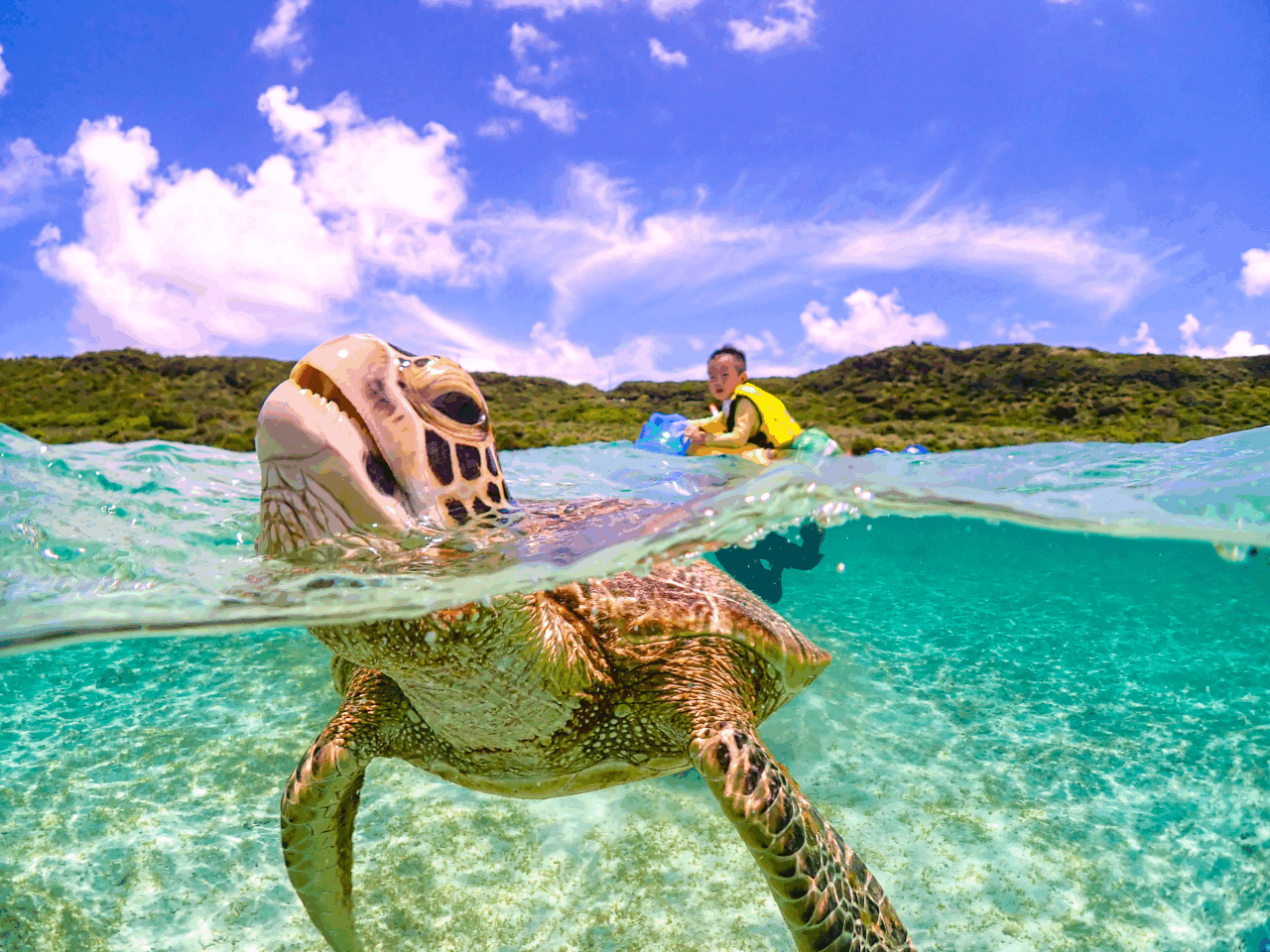 宮古島はウミガメの生息数が多いことで知られ、シュノーケリング中に出会える可能性があるエリアです。