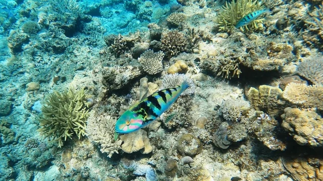 細長い背びれをなびかせながら優雅に泳ぐ姿が印象的で、シュノーケリング中に出会えると水中映えする存在として楽しめます。