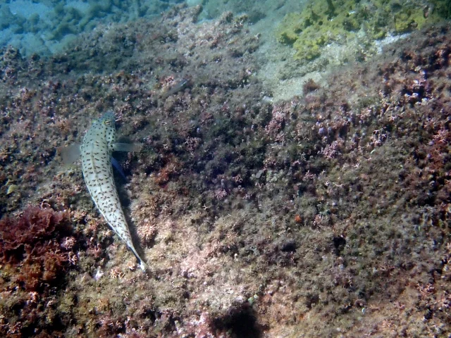 浅い岩場やサンゴ周辺に多く生息しており、シュノーケリング中でも比較的見つけやすいのが特徴。