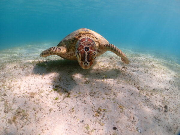 海に入ってすぐ、なんとウミガメに遭遇しました!